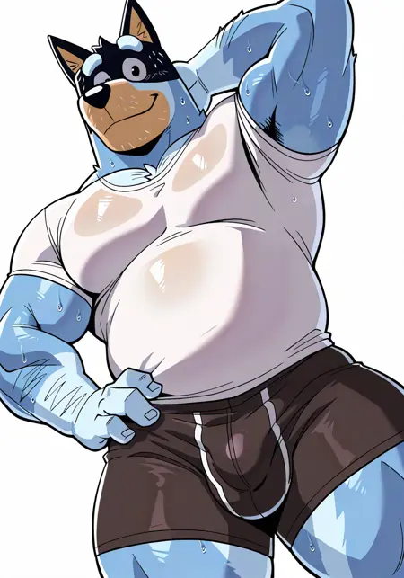 大多数训练图像来自该节目或风格相似。这是一个卡通风格的Bandit,不是蓝色毛茸茸的狼型Bandit。
