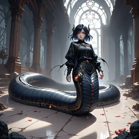 怪物女孩,赛博拉米亚,机械尾巴,红色尾巴,黄色腹部