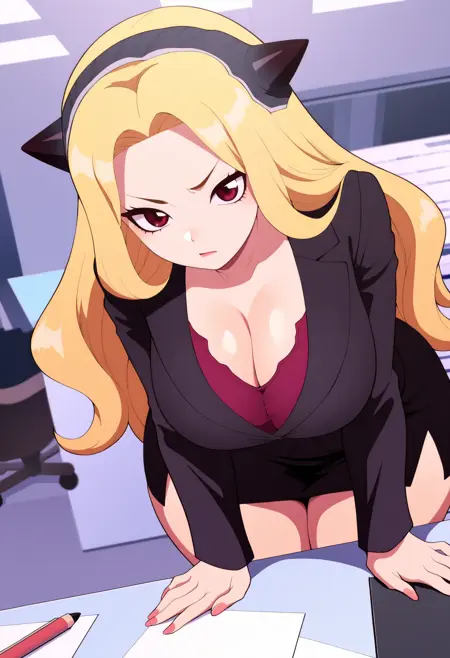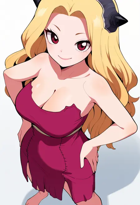 기본 프롬프트: 1girl, minamihokutozai, blonde hair, long hair, rown eyes, hairband, horns