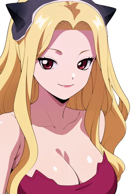 의상 프롬프트: large breasts, red strapless dress, bare shoulders, cleavage, barefoot