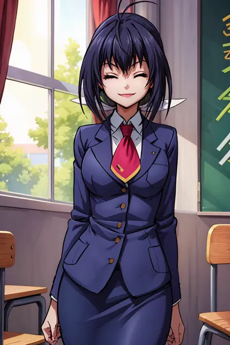 School uniform: blazer, pencil skirt, necktie