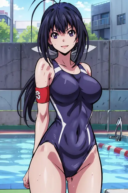 One-piece swimsuit: blue one-piece swimsuit or blue competition swimsuit, left armband*.