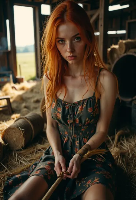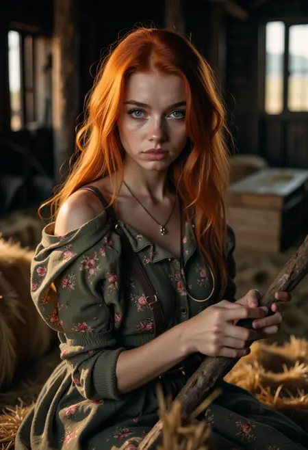 その他の有用なトリガー:woman、photorealistic、barn、farm、dress、red head