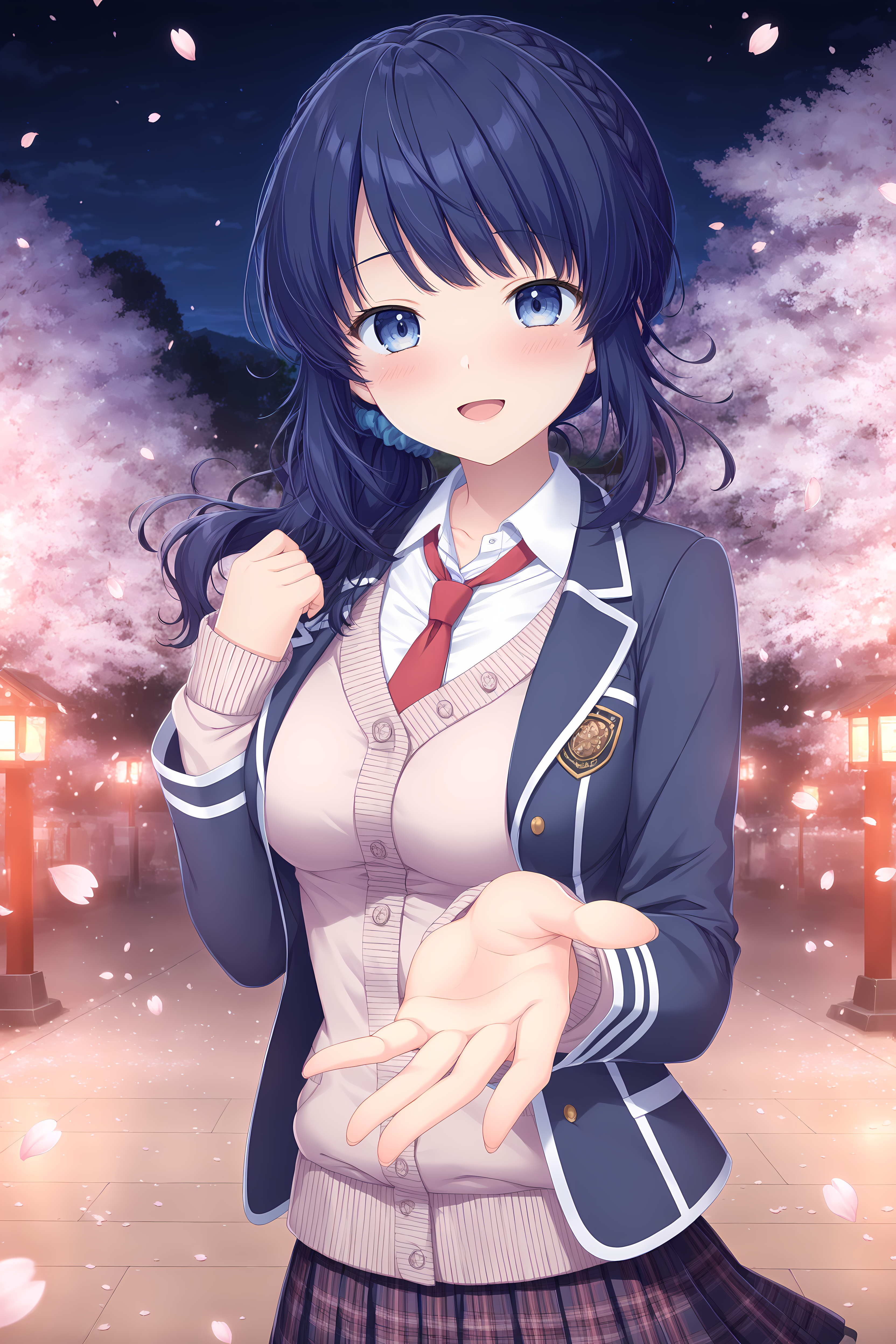 재킷 + 유니폼: 키리하 재킷, 히그스, 빨간 넥타이, 갈색 신발, 넥타이, 재킷, 주름 치마, 검은 히그스, 학교 유니폼, 검은 재킷, 흰 셔츠, 로퍼, 신발, 셔츠, 컬러드 셔츠, 체크 치마, 미니 스커트, 긴 소매,