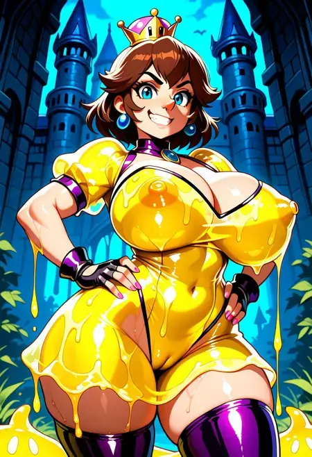 我建议从0.5的权重开始,使用描述所需衣物由黏液制成、由透明黏液制成等的标签或短语。如需增强透明度,尤其是想透过衣物看到特定身体部位,可将黏液描述为“透明的”,或明确说明 desired 身体部位“可见”或“透过黏液/衣物可见”。