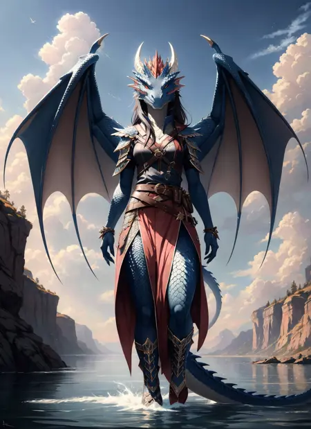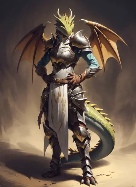 DreamShaper 7で学習済み。トリガーは dragonborn 、その他のトークン(例を参照)を用います。オプションで、レベル14のものには wings、bat wings、dragon wings を使用できます。また、red dragonborn や silver dragonborn のようなサブタイプをプロンプトに含めるだけで、カラーチロムまたはメタリックバリアントを選択できます。詳しくはこちらの例をご覧ください(私は単に趣味でピンクを追加しました。なぜかデータセットにピンクの例がたくさんあったため、ベースのデフォルトをピンクにしたくなかったのです)。