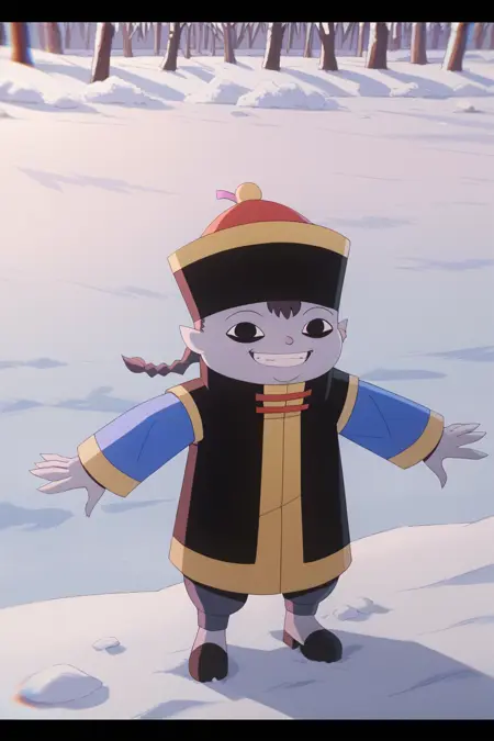 ed, black eyes, grey hair, colored skin, jiangshi, chinese clothes, qing guanmao, black shoes