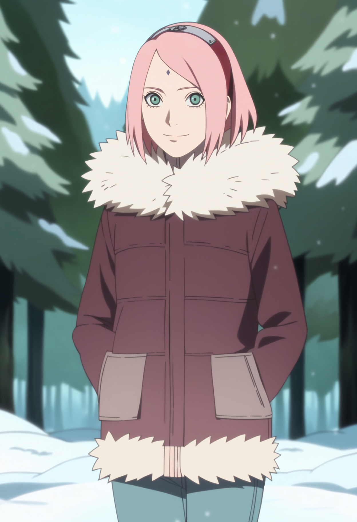 基础提示词:1girl, haruno sakura, pink hair, short hair, green eyes, hairband, forehead mark