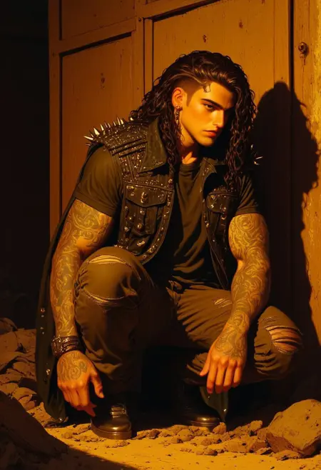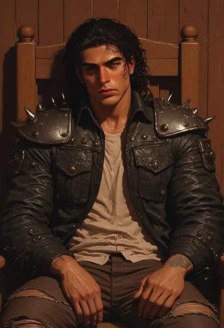 これはスタイルLoRAに併用するキャラクターLoRAです。鮮やかな光と影を伴う強い照明コントラストの中で、荒々しいシーンに強力なキャラクターを強調します。