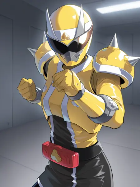提示:机器人,腰带,特摄,头盔,尖刺,盔甲,紧身衣,面罩,无人类,短裙,黑色长裤,面罩