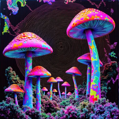 自分自身で生み出したスタイル。明るく輝く歪んだ同心円の輪郭線が特徴的な暗い画像を作成します。