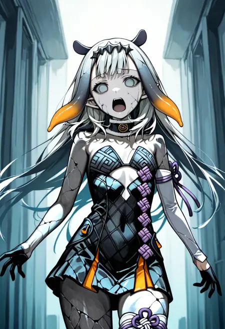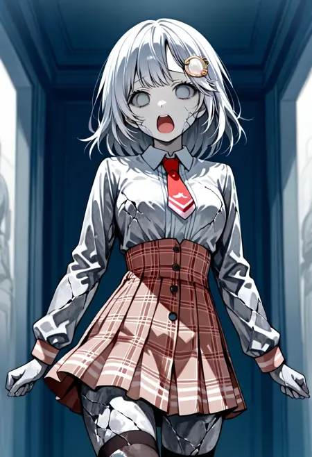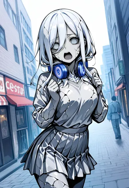 石化,灰色皮肤,灰发,灰白色眼白,灰色眼睛,无瞳孔,