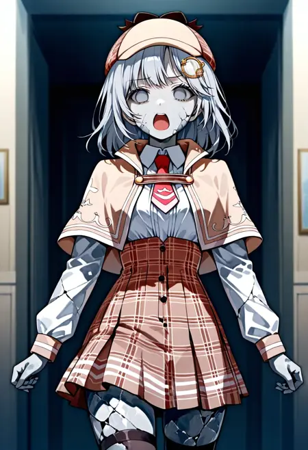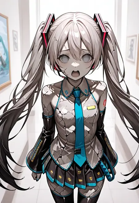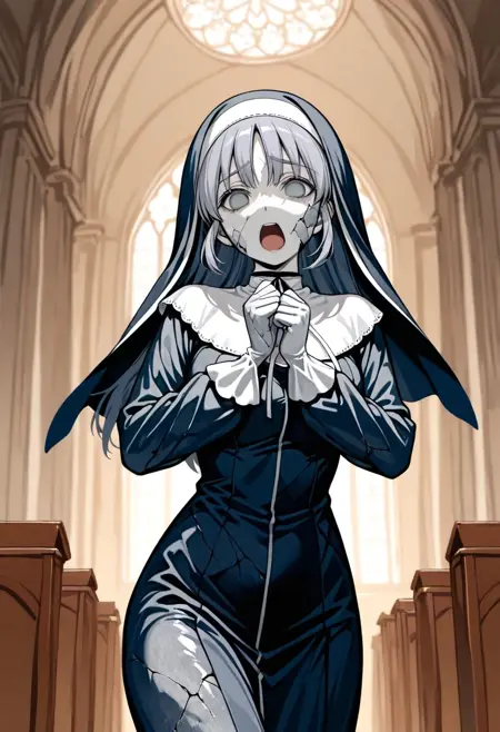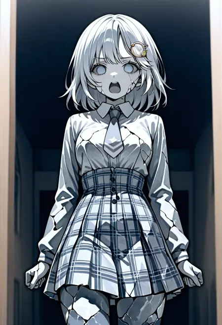 数据集中主要是裸体示例,虽然也可用于穿着衣物的情况,但你需要明确指定所有衣物部件的颜色;如果你将衣物颜色设为灰色,那么衣物也会被石化。上衣通常会出现裂纹,我不确定如何避免这一点。