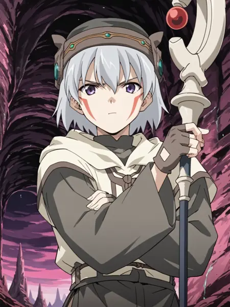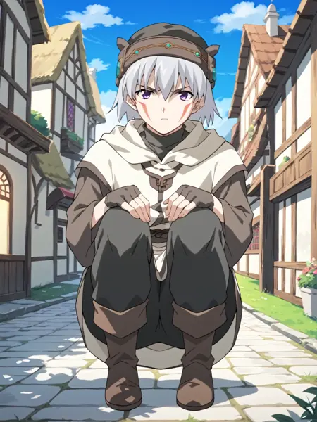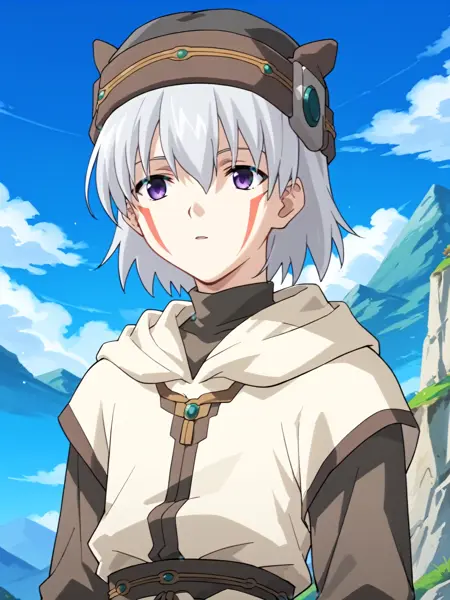 트리거 단어: TsukasaGeneral: 1boy, 남성 중심, 싱글, 단발, 흰 머리, 모자, 보라색 눈, 얼굴 무늬, 얼굴 페인트, 긴 소매, 로브, 장갑, 손가락 없는 장갑, 부츠