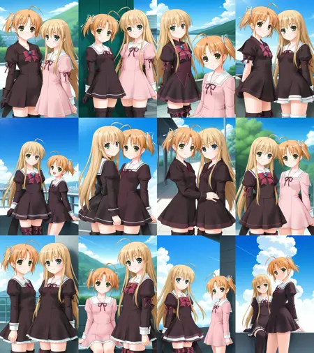 本LoRAの検証結果では、"同時出力はガチャ" です。単体ではある程度出力できますが、細部の再現は難しいです。