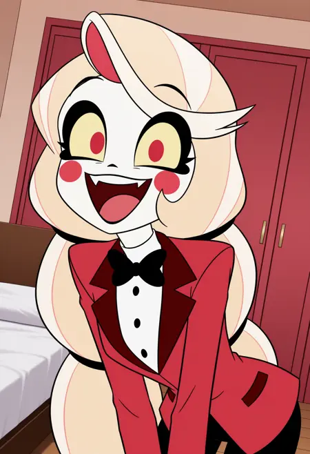 charlie morningstar \(helluva boss\)를 사용하면 charlie morningstar \(hazbin hotel\)보다 더 나은 결과를 얻을 수 있다는 것을 확인했습니다. 그러나 출력을 더욱 세밀하게 조정하고 스타일적 뉘앙스를 맞추기 위해 두 프롬프트 모두를 실험해 보세요.