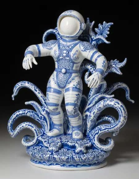 '당신의 프롬프트'를 델프트웨어 스타일로 표현한 세라믹의 사진