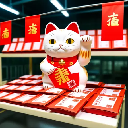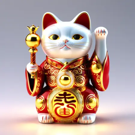 招财猫(Zhaocai Mao)或招き猫(Maneki Neko),又称“招手猫”,是一种广受欢迎的摆件,被认为能为拥有者带来好运和财富。起源于日本,这种摆件通常由陶瓷或塑料制成,常描绘一只三花日本短尾猫,一只爪子抬起做出招手的姿势。