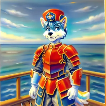 gren sacher (남성, caninu, 개, 흰 털, 흰 몸, 파란 머리, 빨간 눈)