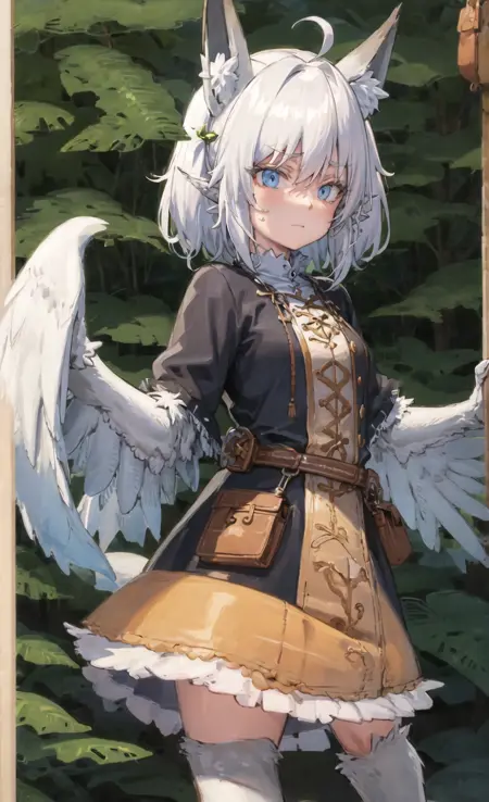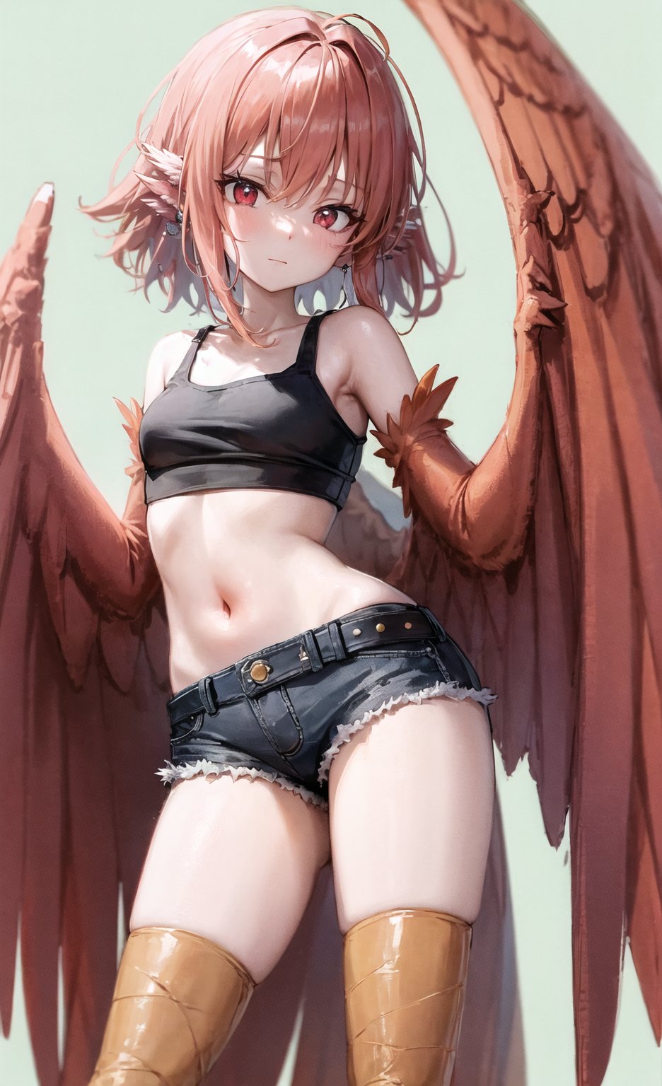 ハーピーの概念を、(翼の腕と鳥の足、全体的により小柄な体型という)主張のあるデフォルトに導きます。モンスターガールにおける「モンスター」の側面をやや強調します。
