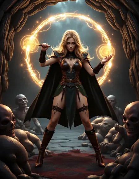 缺点在于背景物体噪点过多,怪物细节过于繁复。我知道这是由于塞入过多不同元素的副作用,但难以调整。SD1.5 有大量调节选项,可应对部分问题,而 Flux 却没有。