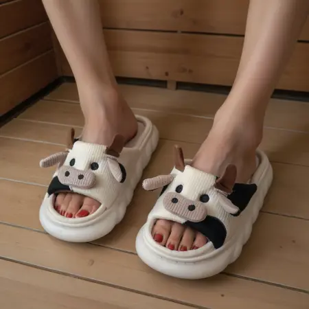 추운 겨울날, 귀여운 발을 따뜻하고 쾌적하게 유지하는 것이 싫으세요? 그렇다면 이 부드러운 소 모양 슬리퍼가 당신을 위한 것입니다!
