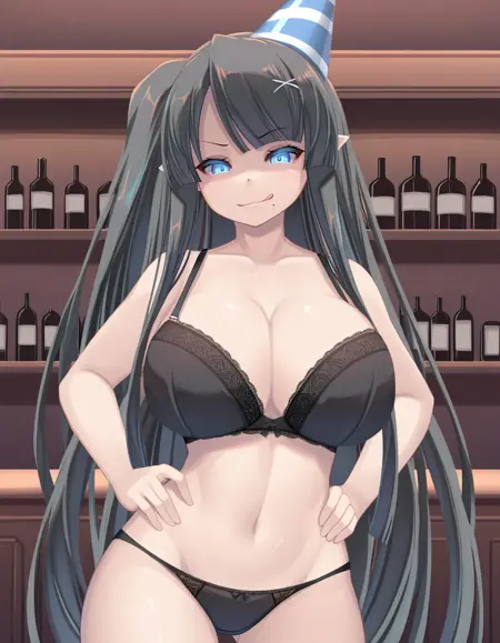 악마 형태: myusca, deyusca, 악마 소녀, 뿔, 점, 날개, 긴 머리, 검은 공막, 문신, 가슴 점, 악마 날개, 배꼽, 큰 가슴, 악마 뿔, 악마 꼬리, 분홍 머리, 뾰족한 귀, 분홍 눈