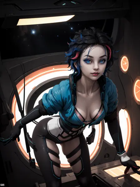 주요 복장에 "sbjp, bodysuit, blue jacker"를 사용할 때는 가중치를 1.0으로 유지하세요.