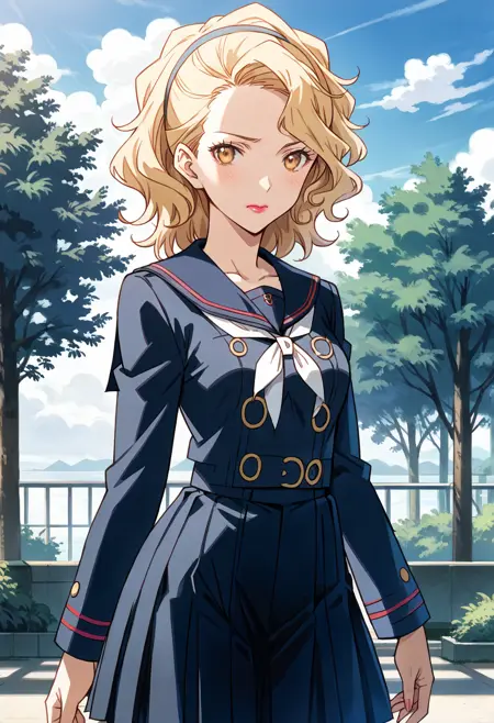 彼女は常に同じ服装を着ているため、この設定はそれほど柔軟ではありません。特に、服装は常に青色になりがちで、円模様が学校の制服の画像でお分かりのように、非常に強く現れます。