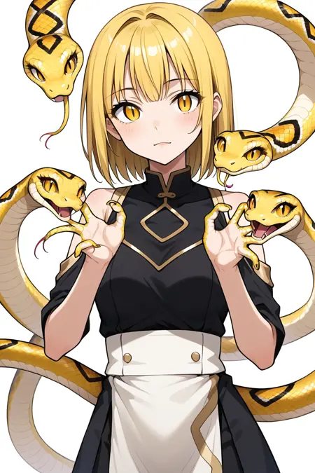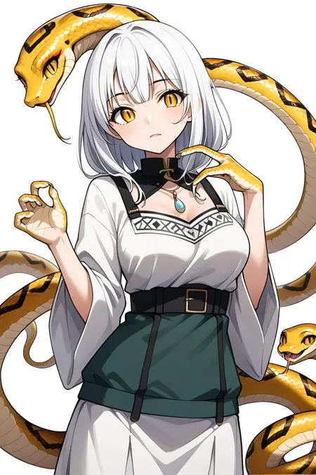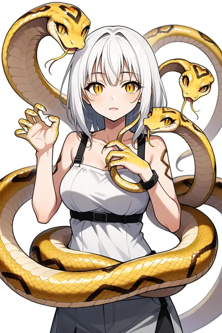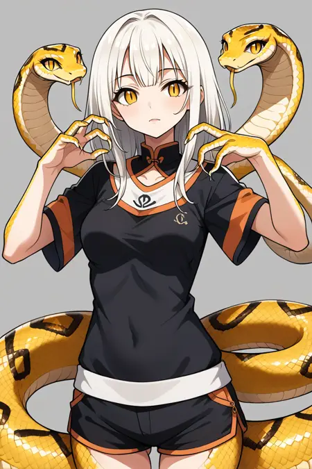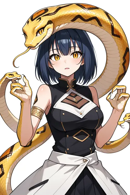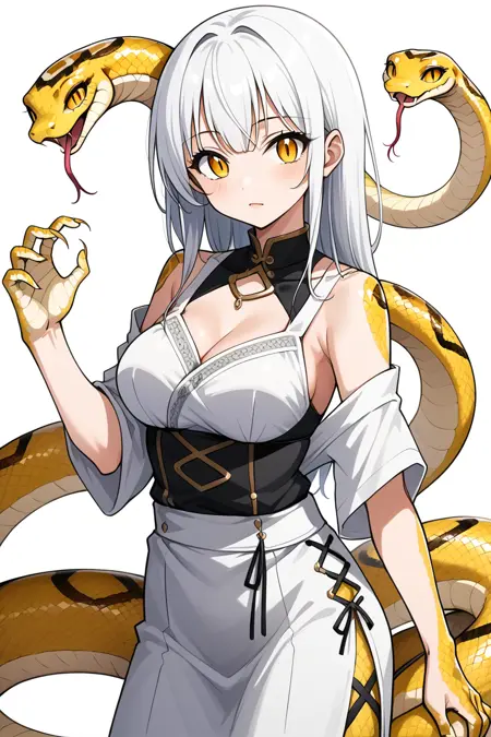 Appearance: snake girl, snake fingers, snake hands, snake eyes, scales