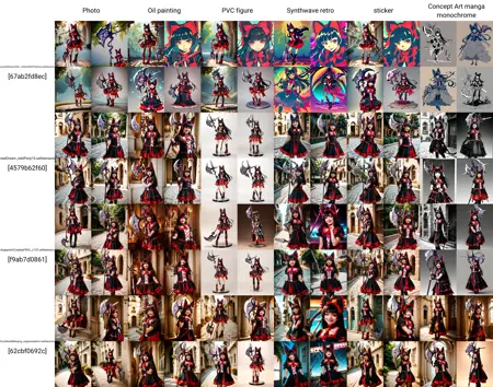 또한, 데이터셋에는 만화의 페이지도 포함되어 있으므로, m_outfit 또는 gothic dress를 사용하여 만화 스타일의 복장으로 그녀를 생성해 볼 수 있습니다.