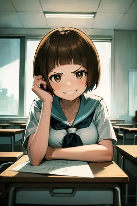 Basic prompts : brown eyes, brown hair, short hair, bob cut