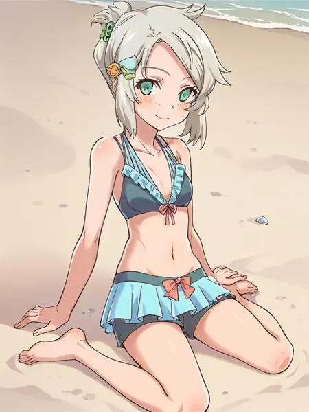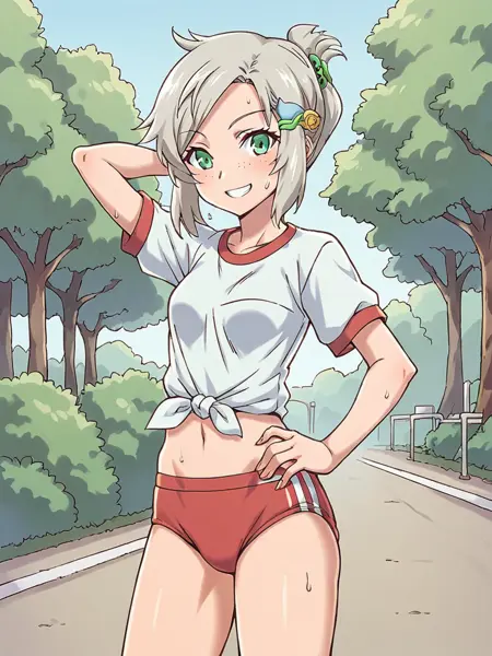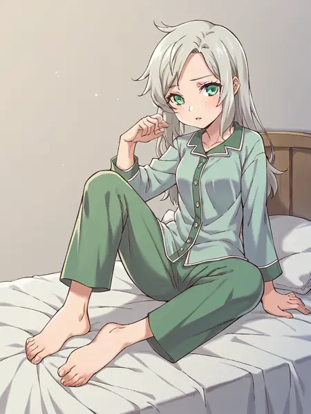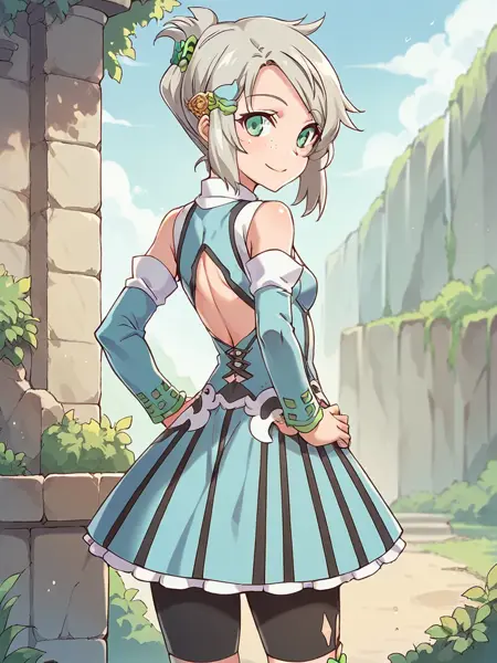 lucy rf,灰发,折叠马尾,绿眼睛,雀斑,小乳房,发饰,