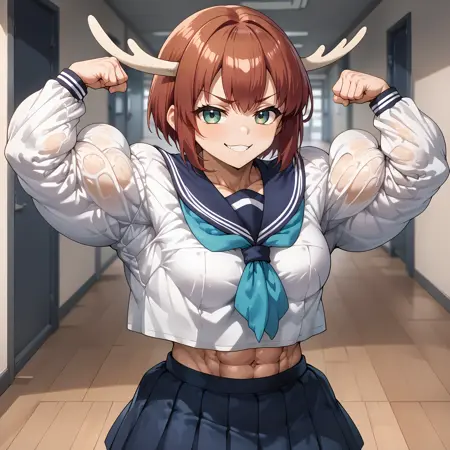推奨タグ: rock-hard, big muscles, muscular female, detailed abs, super abs