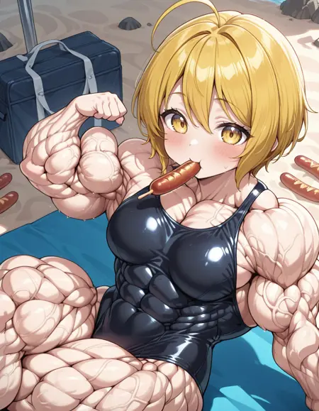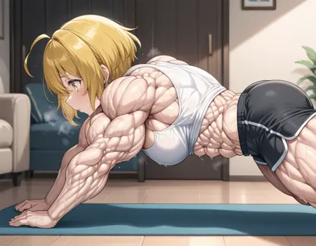Recommended tags: rock-hard, big muscles, muscular female, detailed abs, super abs