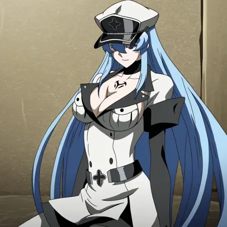 | 训练词汇 | Esdeath,sadistic, mature beauty, 1 girl, beautiful lady, slender woman, long light blue hair, long eyelashes, blue eyes,tattoo, chest,sign,teigu,porcelain white skin,breasts, cleavage已复制! long sleeves with buttons on the upper arms, a blue scarf on her neck,high-heeled boots,peaked hat,已复制! |