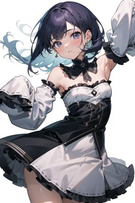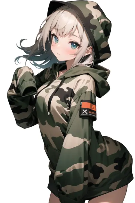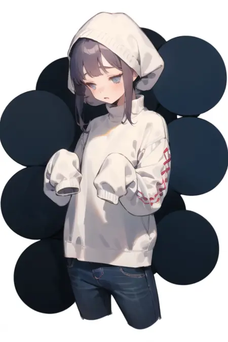 我更倾向于使用 "(sleeves past wrists:1.2), (sleeves past fingers:1.2),"