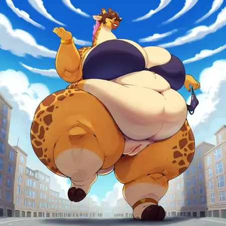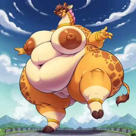 kubwa_kalua, giraffe,1girl,furry, solo, huge breasts , furry female - main tags