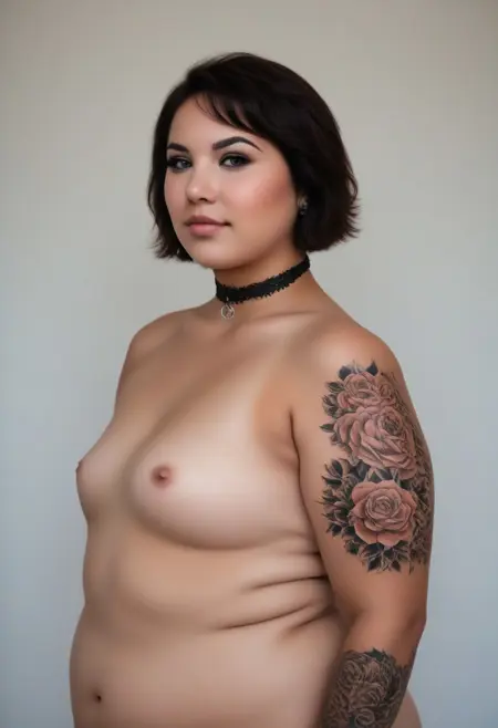 `작은 가슴`과 `넓은 골반`은 암시되지만, 추가하지 않으면 일반적으로 나타나지 않습니다. 개인적으로 저는 이 소녀에게 이런 특징이 좋아요. 하지만 원하시면 포함하지 않으셔도 됩니다.