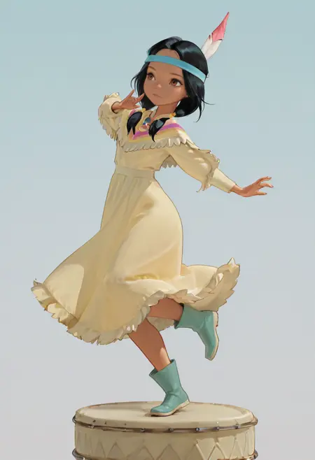 Tigerlily, 1girl, native american, blue headband, feather hair ornament, fringed dress