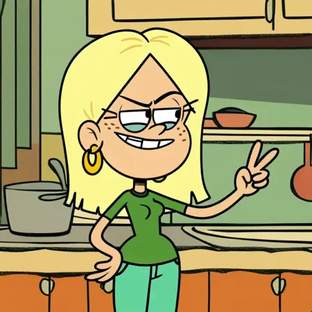 becca_c, blonde hair, earrings, freckles, shirt, pants