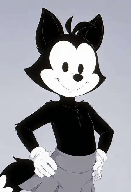 roxyttf, 1girl, furry, tail, animal ears, black eyes, simple eyes, gloves, high heels, skirt,