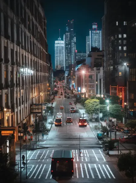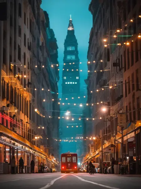 使用摄影作品制作的模型可生成城市鸟瞰图、街景等作品,灯光效果更具特色,也可尝试配合ControlNet使用。
