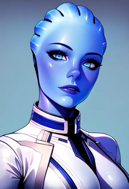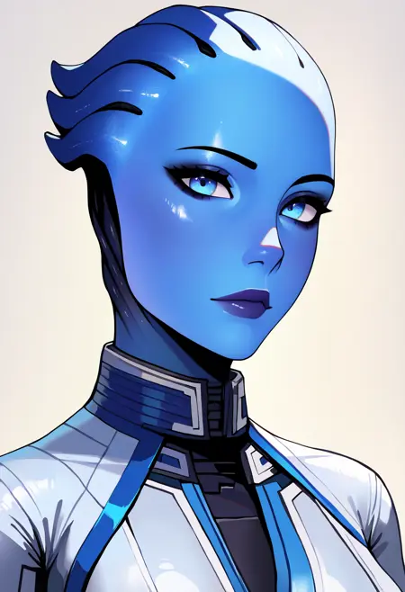基础提示词:1girl, liara, blue eyes, blue skin, colored skin服装提示词:armor, bodysuit