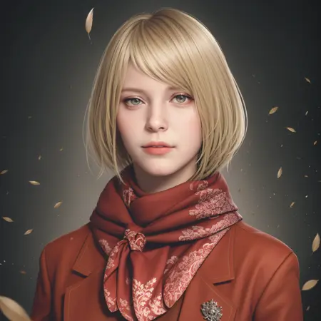 1girl, solo, looking at viewer, outdoors,dark_shot, lora:ashley:0.6ashley graham, yellow clothes, green plaid skirt, 1girl, blonde_hair, feathers, green_eyes, looking_at_viewer, paradis_military_uniform, realistic, short_hair, solo, swept_bangs, upper_body, 1girl, solo, looking_at_viewer, short_hair, blonde_hair, green upper_body, scarf, lips, leaf, freckles, red_scarf, realistic, Background