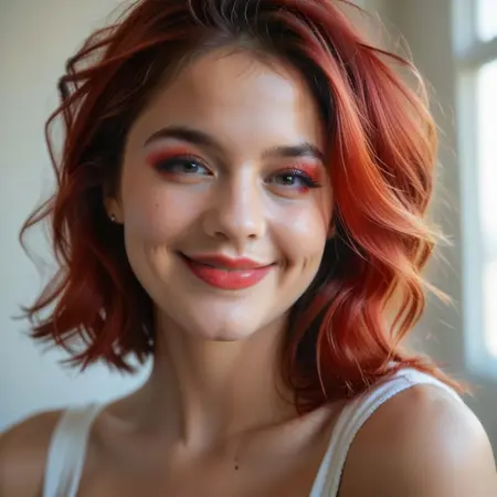 トリガーは Tiff、赤髪、ツートンヘア で、もう少し詳細を追加するとすれば 長いまつ毛、赤い唇 です。