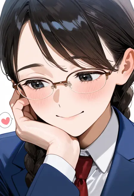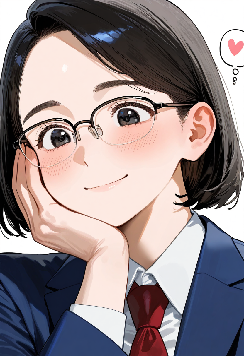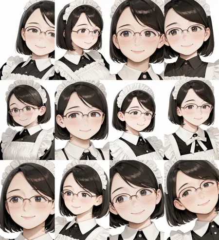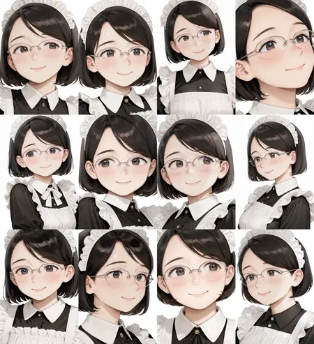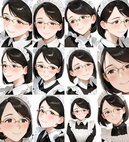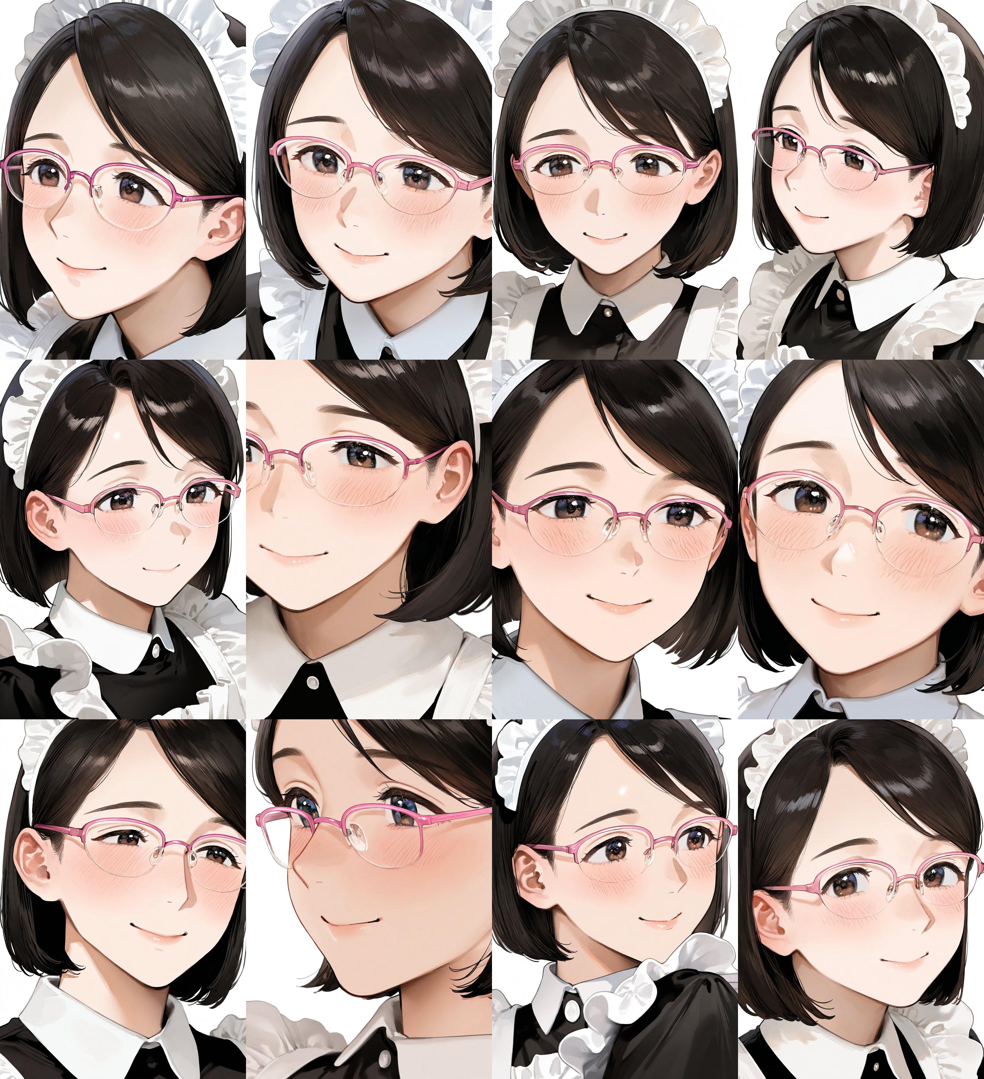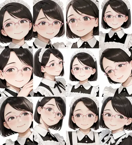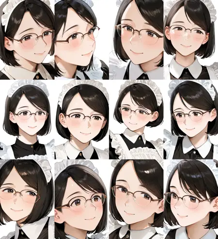 이 LoRA는 금속 프레임의 타원형 하프림 안경을 그릴 수 있습니다.