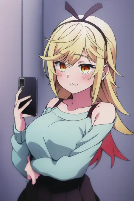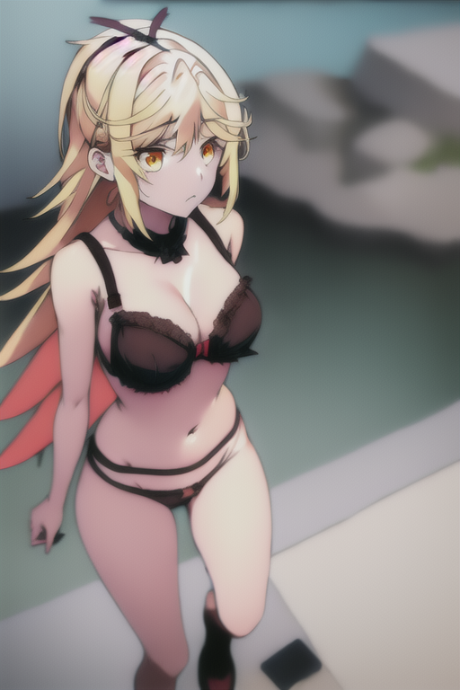 主なプロンプト:1girl, long_hair, blonde hair, orange eyes, spiked hair, :3, multicolored hair