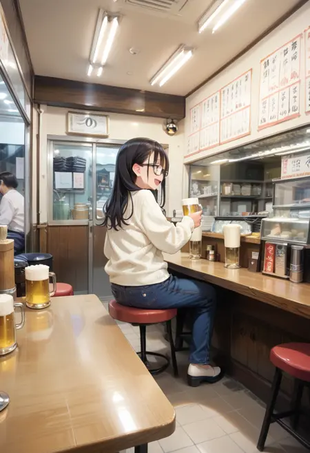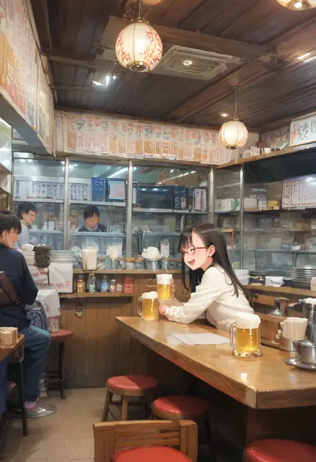 这可能是一个能描绘出类似大众酒馆内部场景的LoRA。