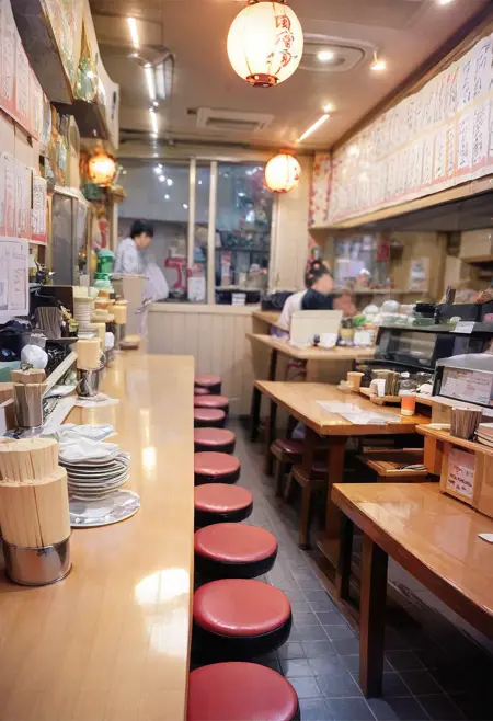 sakaba, indoors, tiles, chair, tile floor, ceiling light, table, window, cup, sitting, solo, japanese architecture, japan, counter